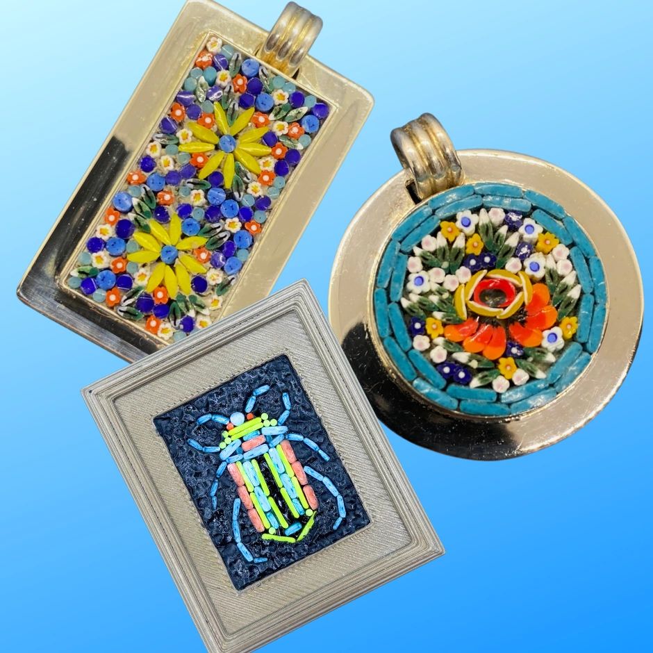 assembles jewelry from her handmade beads. Janice's newest passion is glass micro mosaic jewelry. Micro mosaics originated in Italy and became popular with tourists in the 1800s. Janice has learned how to create these ancient pieces using he