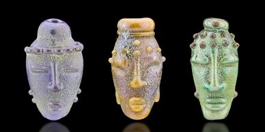 In this class, we will work sculpturally in the flame, and you’ll create mask beads and other stylized faces. This class will allow you to hone your sculptural skills, using inspiration from African masks as a starting point. We’ll decorate these mask shapes with various types of powders, including reduction powders and enamels, as well as a few non-glass elements. As time permits, we will explore classic ancient vessel shapes. You’ll have lots of time to play with the endless decorative possibilities that powders can create. The result will be beads that look like artifacts that have been dug up from an archeological dig. We’ll discover the transformational power of masks, revealed in the flame, one bead at a time.