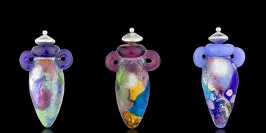 In this class you’ll learn to create small vessel-shaped pendants and colorful collage-style beads. You'll use decorative components including dichroic glass, silver foil, enamel powders and glass shards to create a multi-layered effect in your pieces. You’ll also learn tips and tricks for creating perfectly-shaped handles for your small vessels. There will be lots of time to play with the endless decorative possibilities these components can create. While these vessels appear to be functional, they are for decorative purposes only.These vessels are made off the end of a mandrel and are best used by attaching a bale to the top of the piece when it is cool.